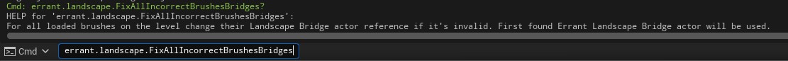 errant.landscape.FixAllIncorrectBrushesBridgesconsole command to quickly fix brushes with invalid Bridge actor references. The command assigns the first available Bridge actor to the broken brushes. Previously, this required manually assigning the Bridge actor to each affected brush.